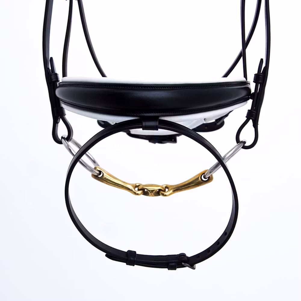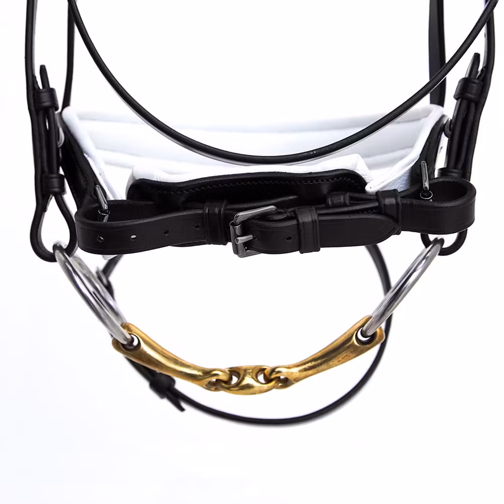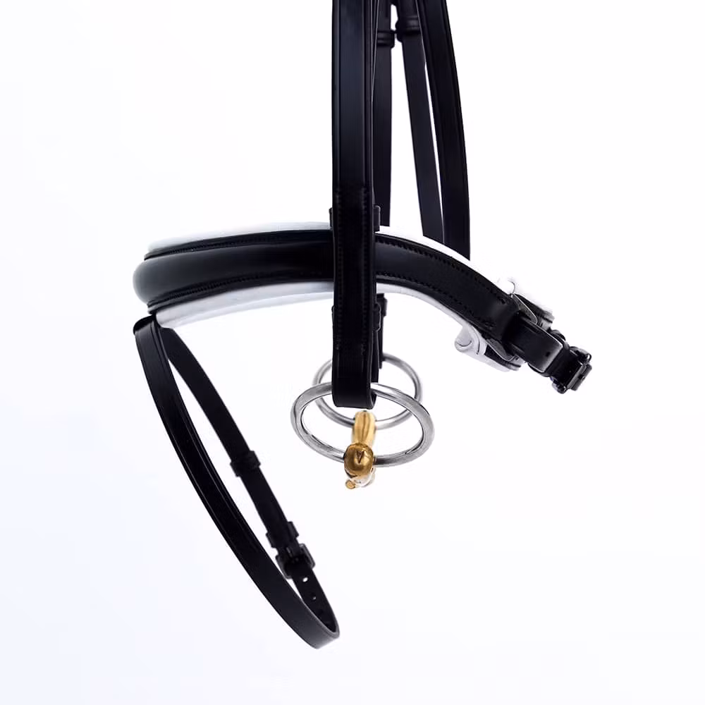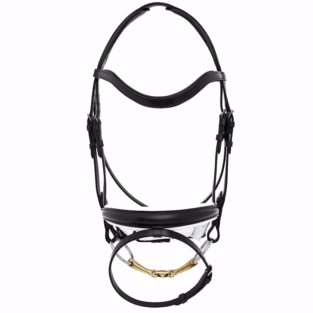 Ett slätt pannband i läder medföljer tränsen. Pannbandet på bilden ingår ej.