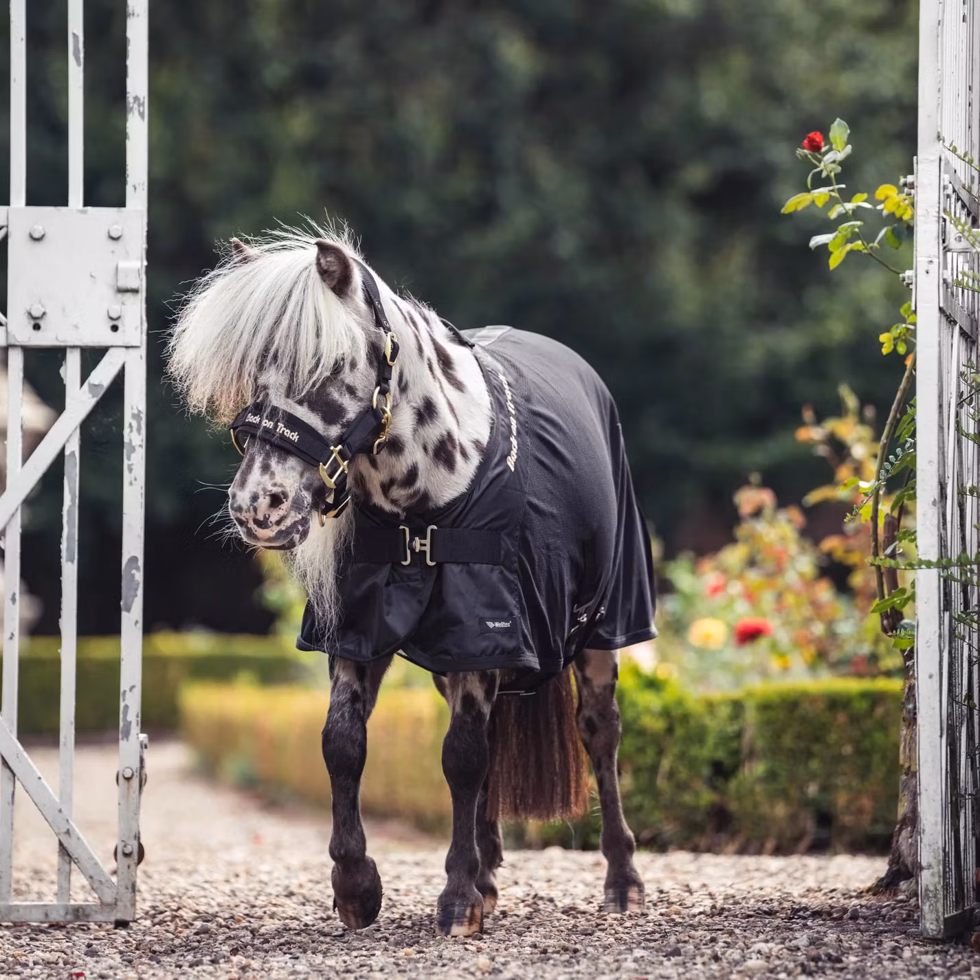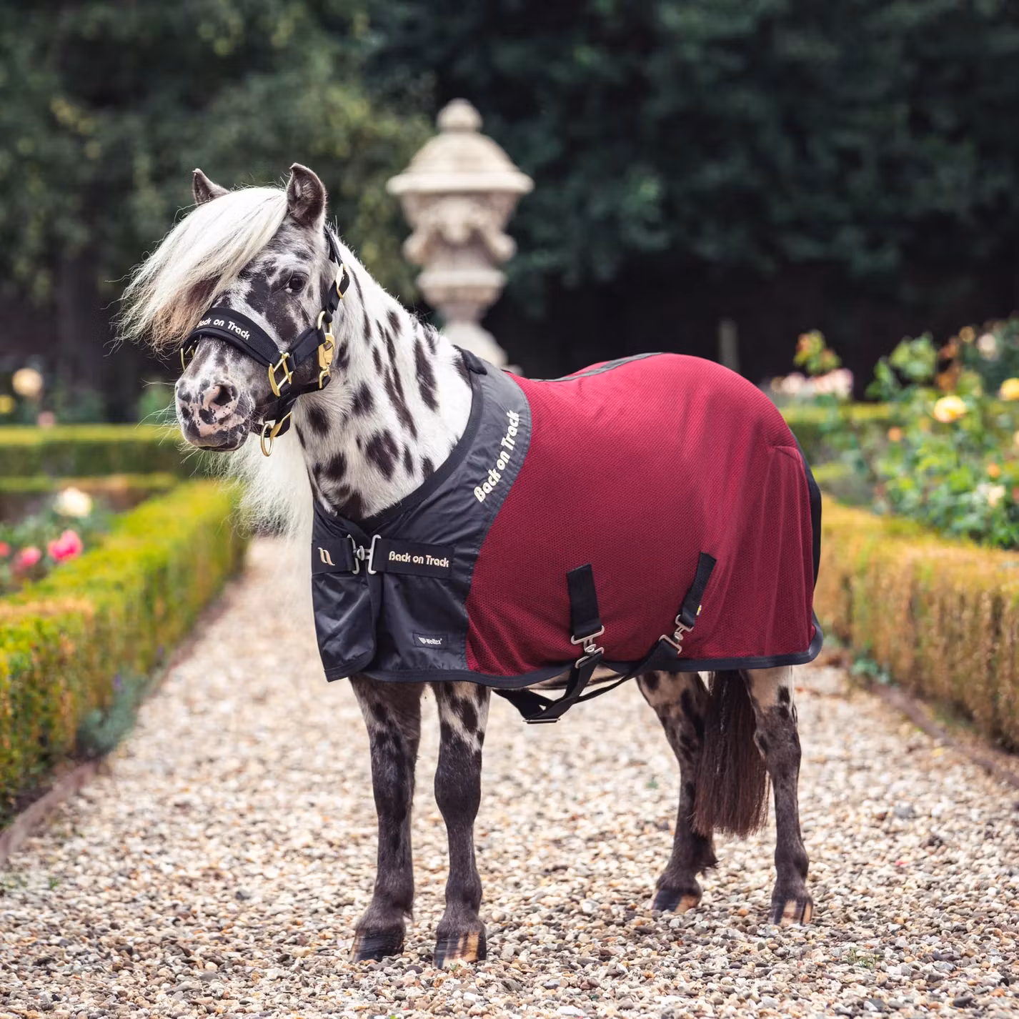 Deluxe-varianten av vårt nättäcke har en formsydd rygglinje och en ny, väldesignad anatomisk passform med dolda veck över bogarna. Ett tätt vävt tyg vid bringan minskar risken för skav och att päls fastnar. Ett mjukt fleecefoder vid manken ger extra komfort och undviker skav på manen. Täcket knäpps med dubbla bogspännen och kryssgjordar under magen. D-ringar för svansrem.