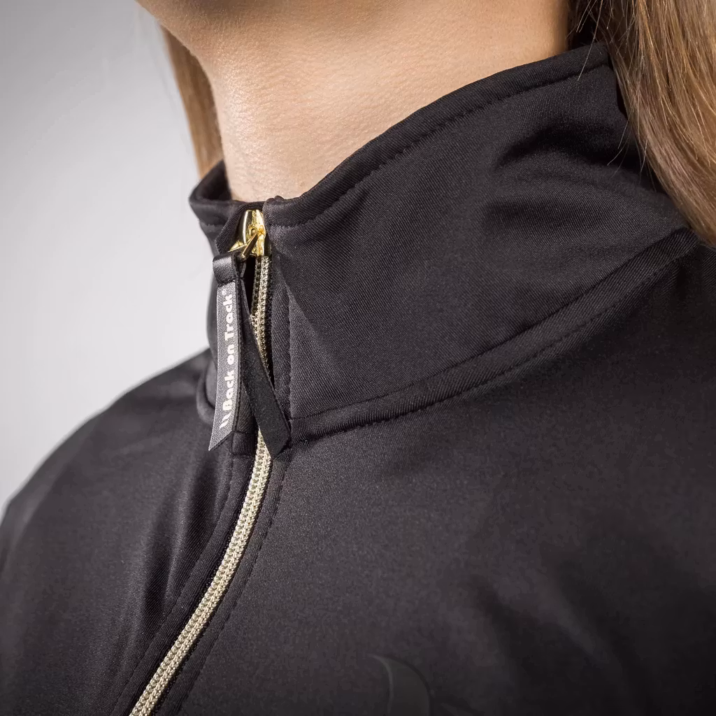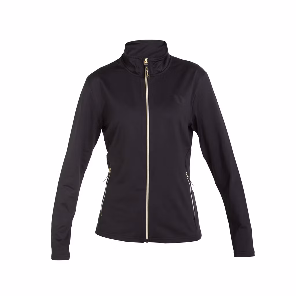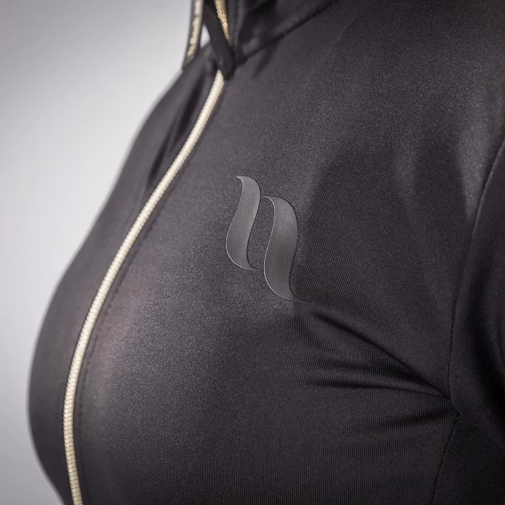 Tröjan är tillverkad i ett lättviktigt, mjukt och elastiskt material av hög kvalitet. Svart med en guldfärgad dragkedja framtill. Två fickor med guldfärgade dragkedjor på sidorna. Hög krage med nära passform för optimal effekt av Iontex®-teknologin i nackpartiet.