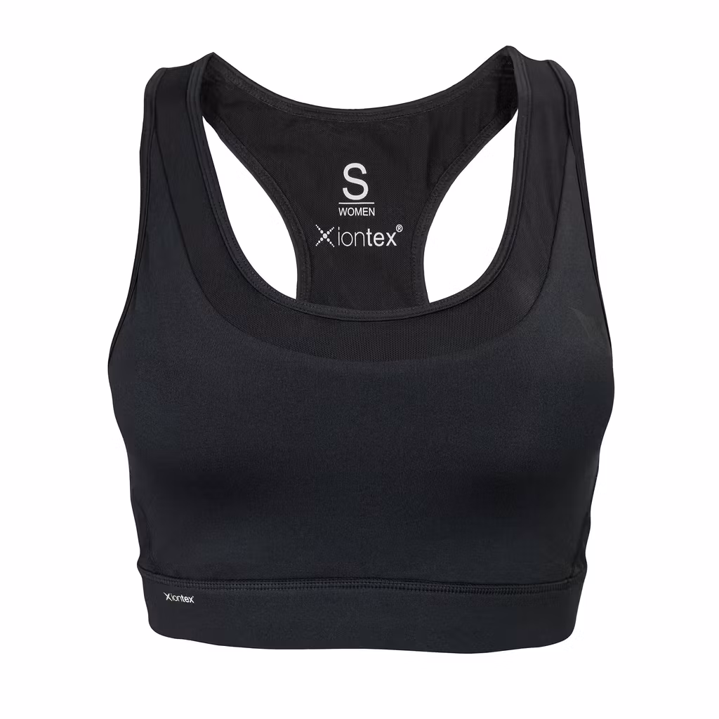 Både den öppna designen och funktionsmaterialet gör denna sport-BH särskilt lämplig att bära under fysiskt krävande aktiviteter och intensiva träningspass. Det lätta tyget med Iontex®-teknologi absorberar den infraröda energi som produceras av kroppsvärmen och reflekterar tillbaka den ner i vävnaderna - samtidigt som plagget andas och förblir behagligt svalt. Effekten kan gynna blodcirkulationen i musklerna och hålla dem varma och mjuka.