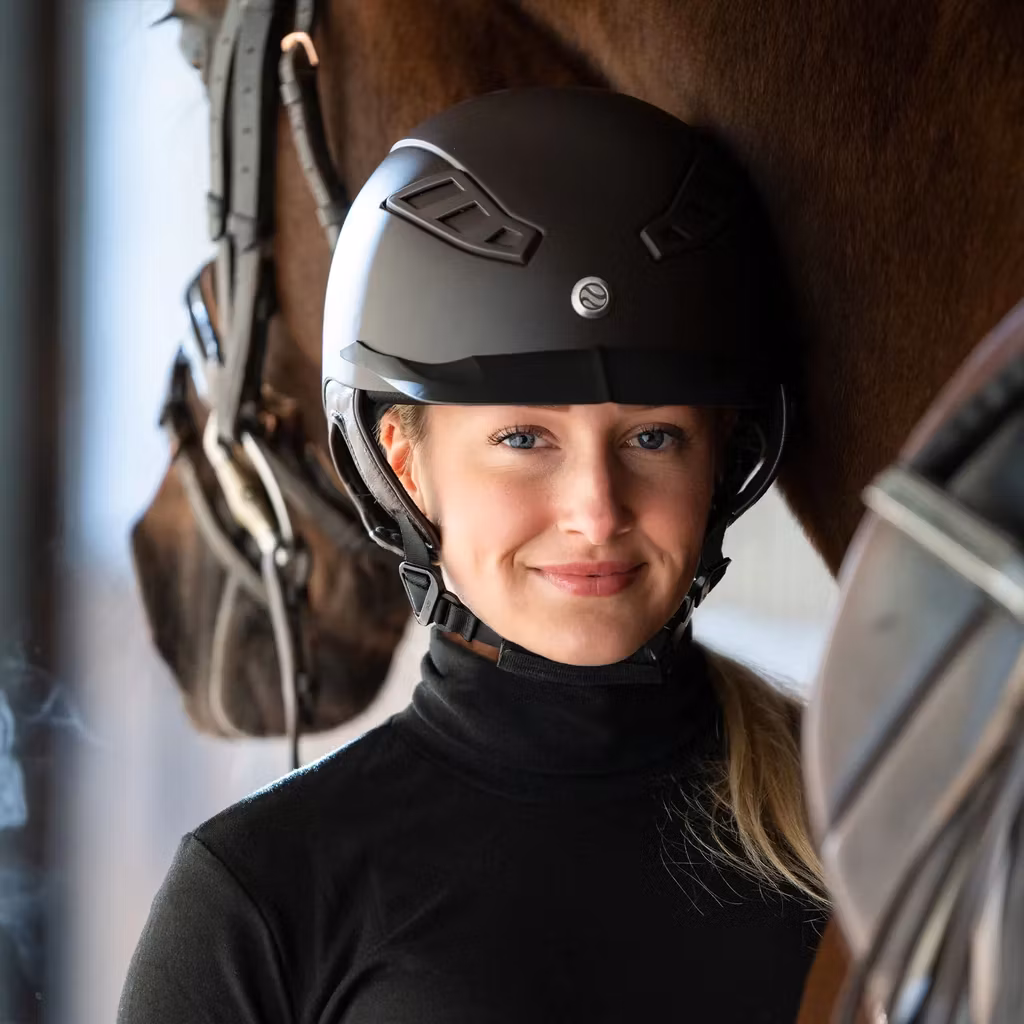 Hjälmen har en svart mattblank yta som både ger en stilren look och gör det lätt att hålla den ren. Ventilationshål på både fram- och baksidan håller dig sval och bekväm. Linern (innerfodret) har Back on Tracks Coolmax®-teknologi som transporterar bort fukt och ökar komforten ytterligare. Fodret är avtagbart och kan enkelt tvättas rent med ljummet vatten.