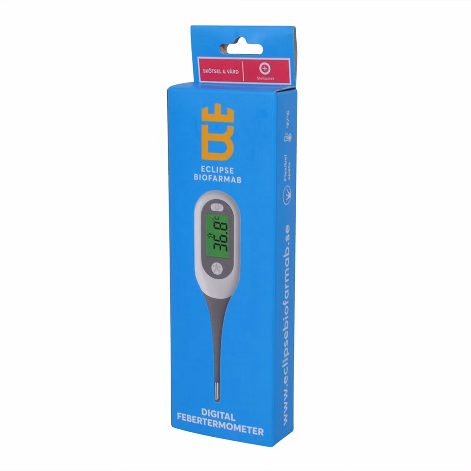 Termometer från Eclipse Biofarmab med böjlig spets för armhåla, rektalt eller oralt.