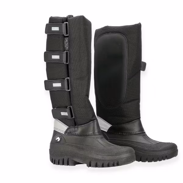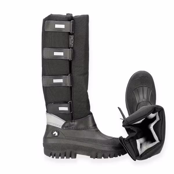 Varma thermoridstövlar med kardborreförslutning längs hela skaftet.