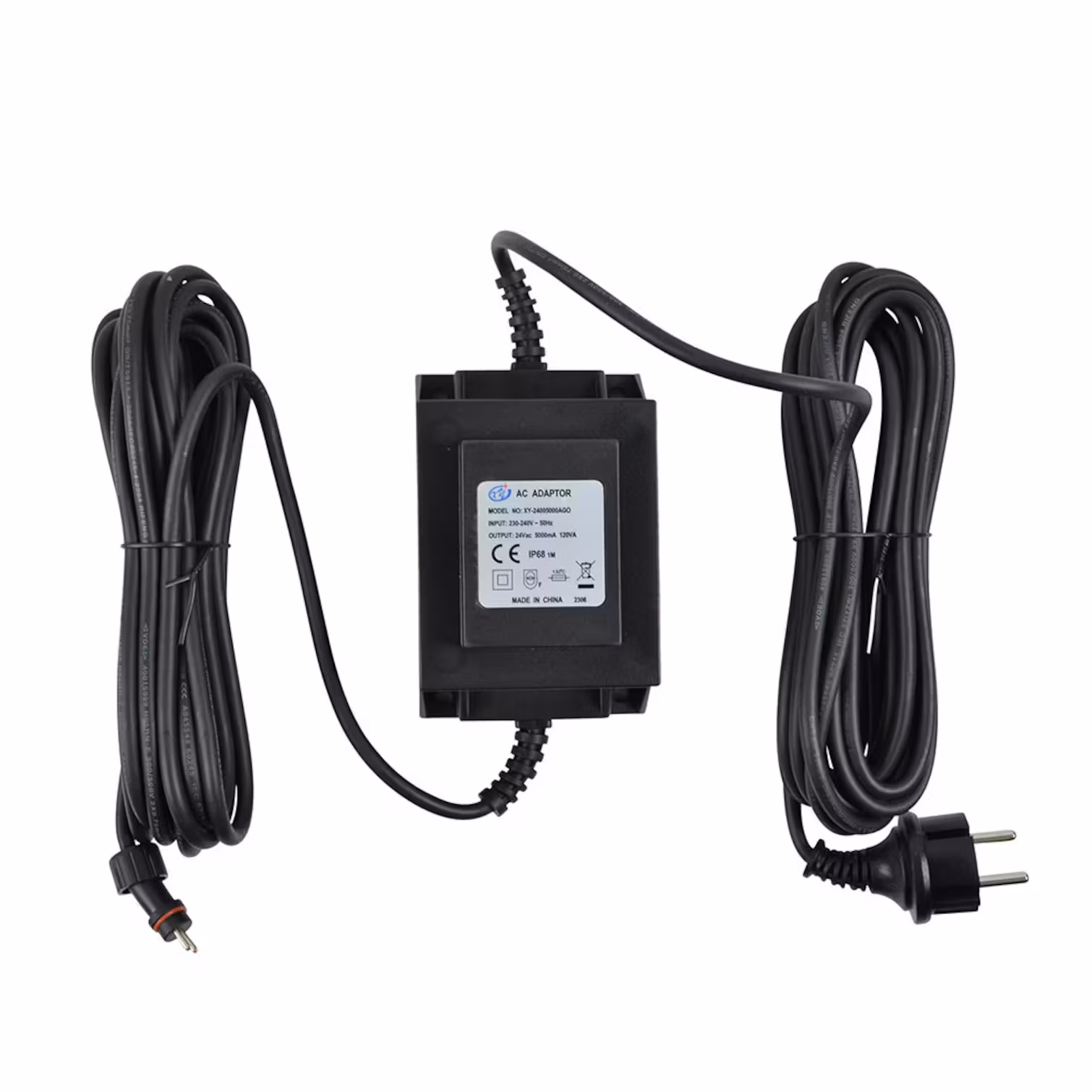 Rymmer 45 liter med 15-litersskala och står stabilt på en bred botten. Vattentät transformator, IP68, och sladd (total längd 10 m varav 5 m kontakt-transformator) ingår.