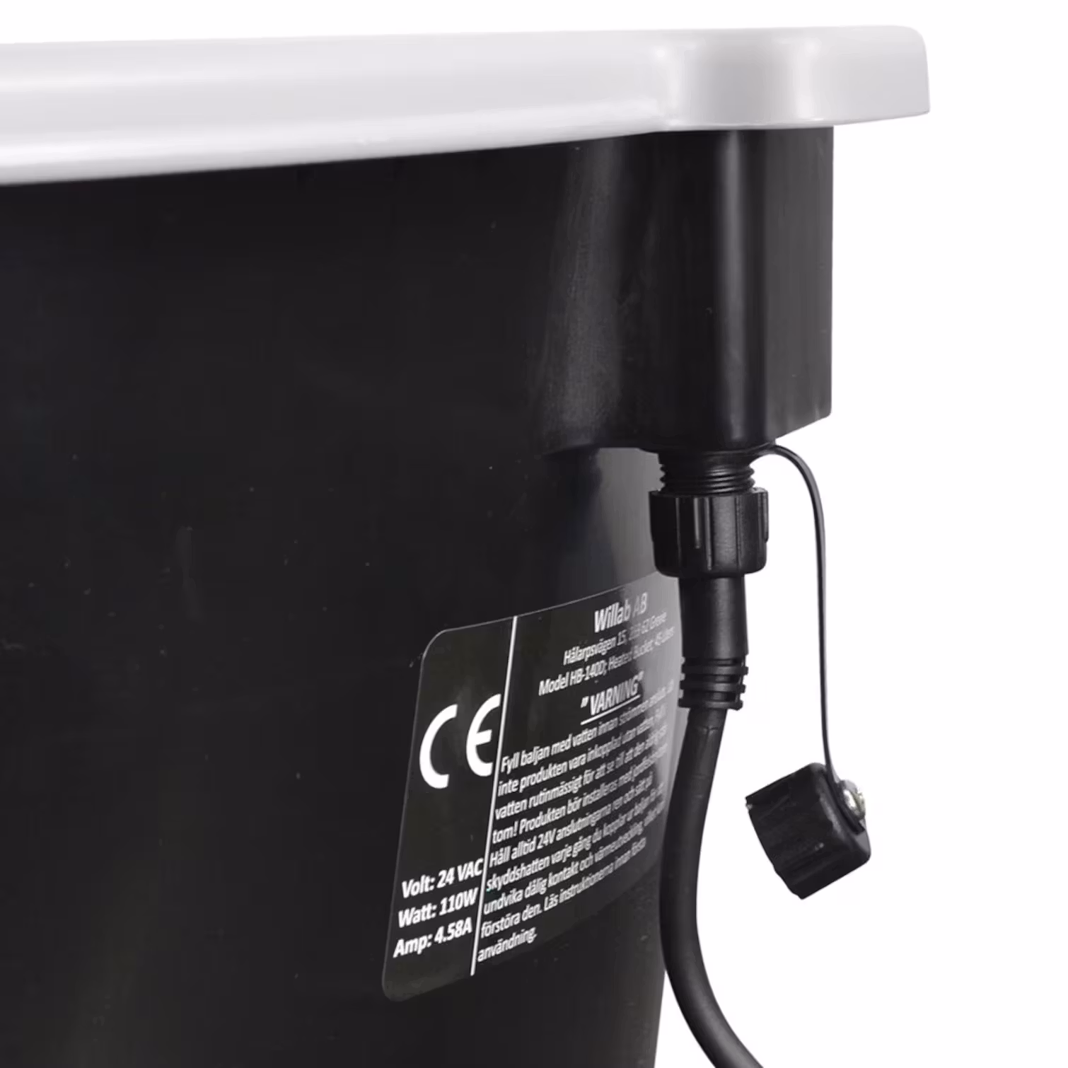 Värmebalja som kan användas utomhus eller i ouppvärmda utrymmen under den kalla årstiden. Tillverkad i livsmedelsgodkänd plast som är kraftig och isolerand
